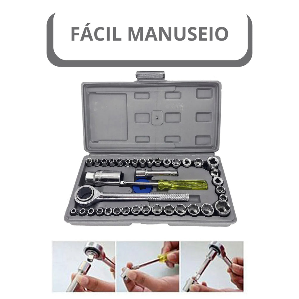 Jogo De Ferramentas 40 Peças Soquetes c/ Maleta