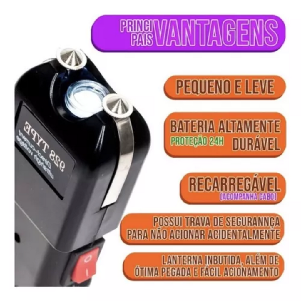 Em comparação com outros dispositivos de tamanho similar, este modelo se destaca por ser o mais potente, oferecendo uma solução de defesa pessoal mais eficaz para situações de risco.
