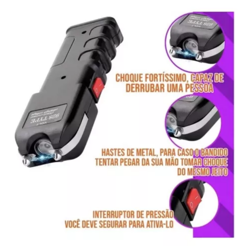 Esta lanterna de choque é ideal para sua segurança pessoal, combinando a utilidade de uma lanterna forte com a capacidade de um aparelho de choque. Ela é compacta e discreta, cabendo facilmente no seu bolso ou bolsa para que você possa levá-la a qualquer lugar sem chamar a atenção.