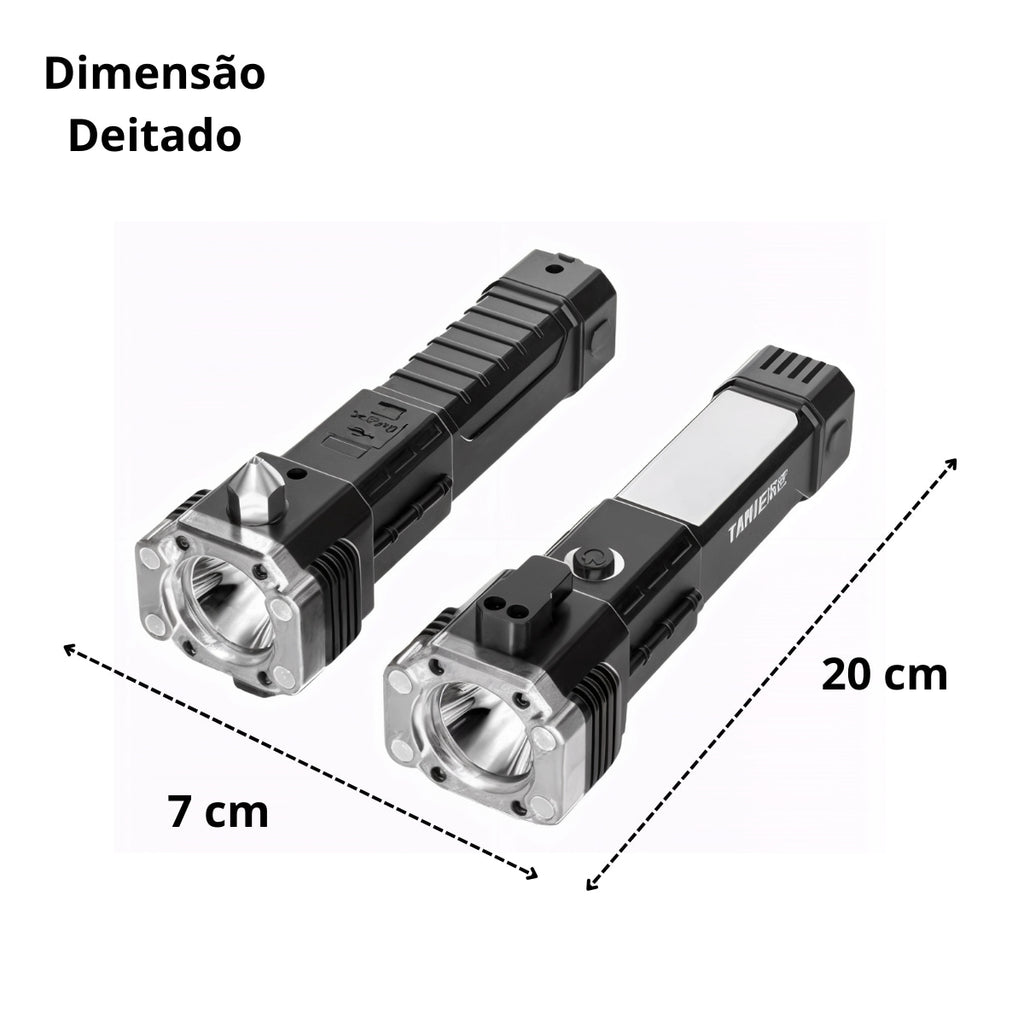 - Multifunção, lanterna equipada: Quebra vidro, corta cinto, luz lateral, função powerbank e base magnética imã.
