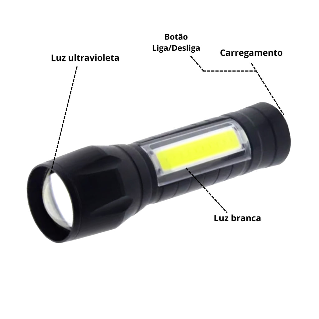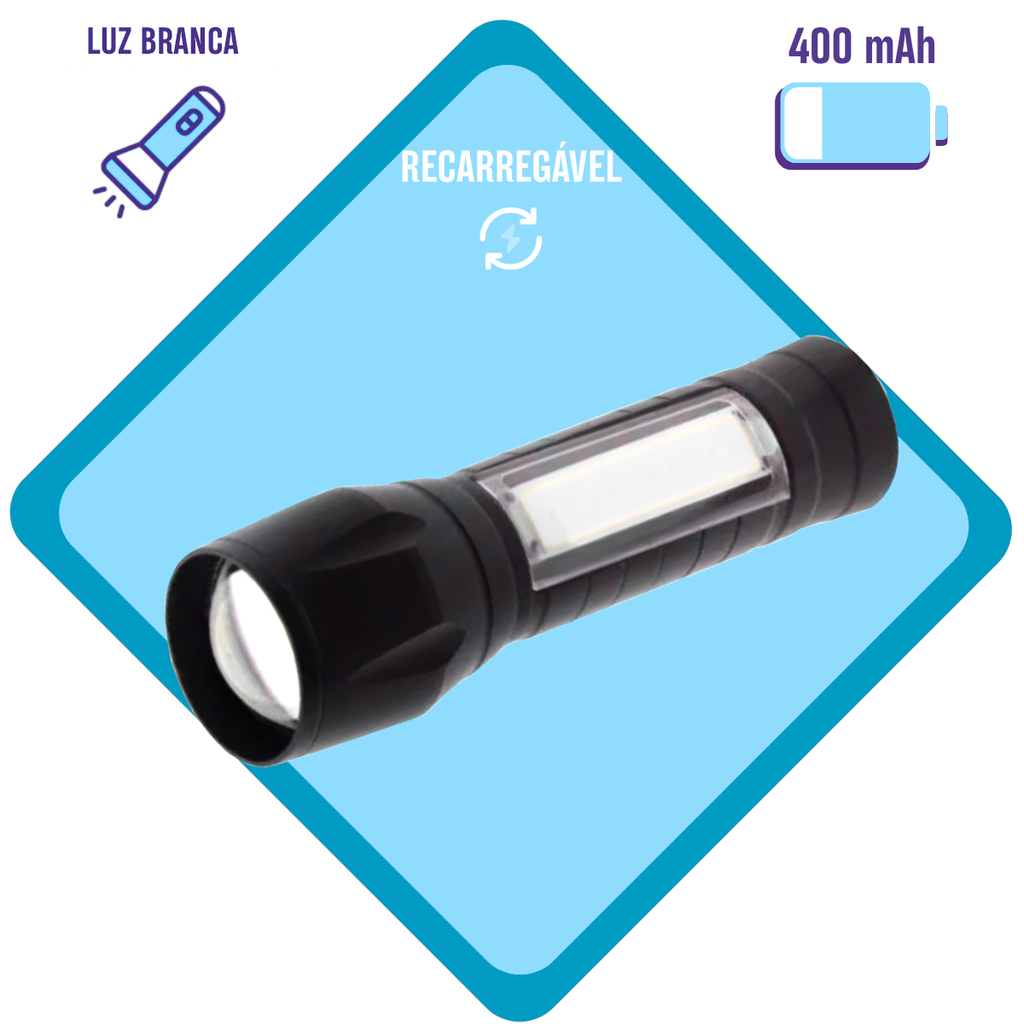 Mini Lanterna de Bolso Luz Branca e Luz Lateral Bateria Recarregável LAN-7006