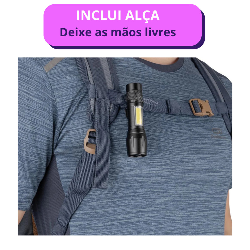 - 3 Modos de iluminação: Zoom Telescópico, Luz Forte e Lateral;
