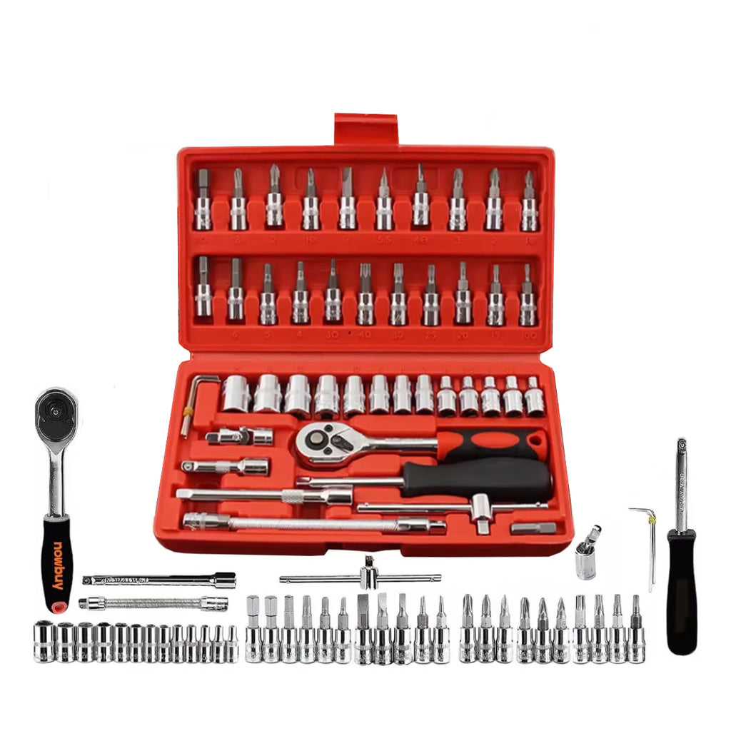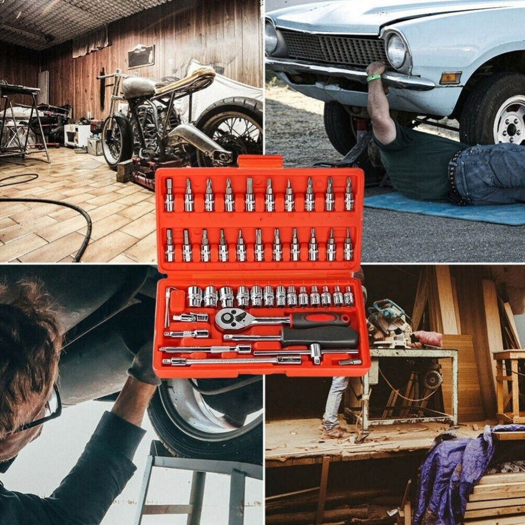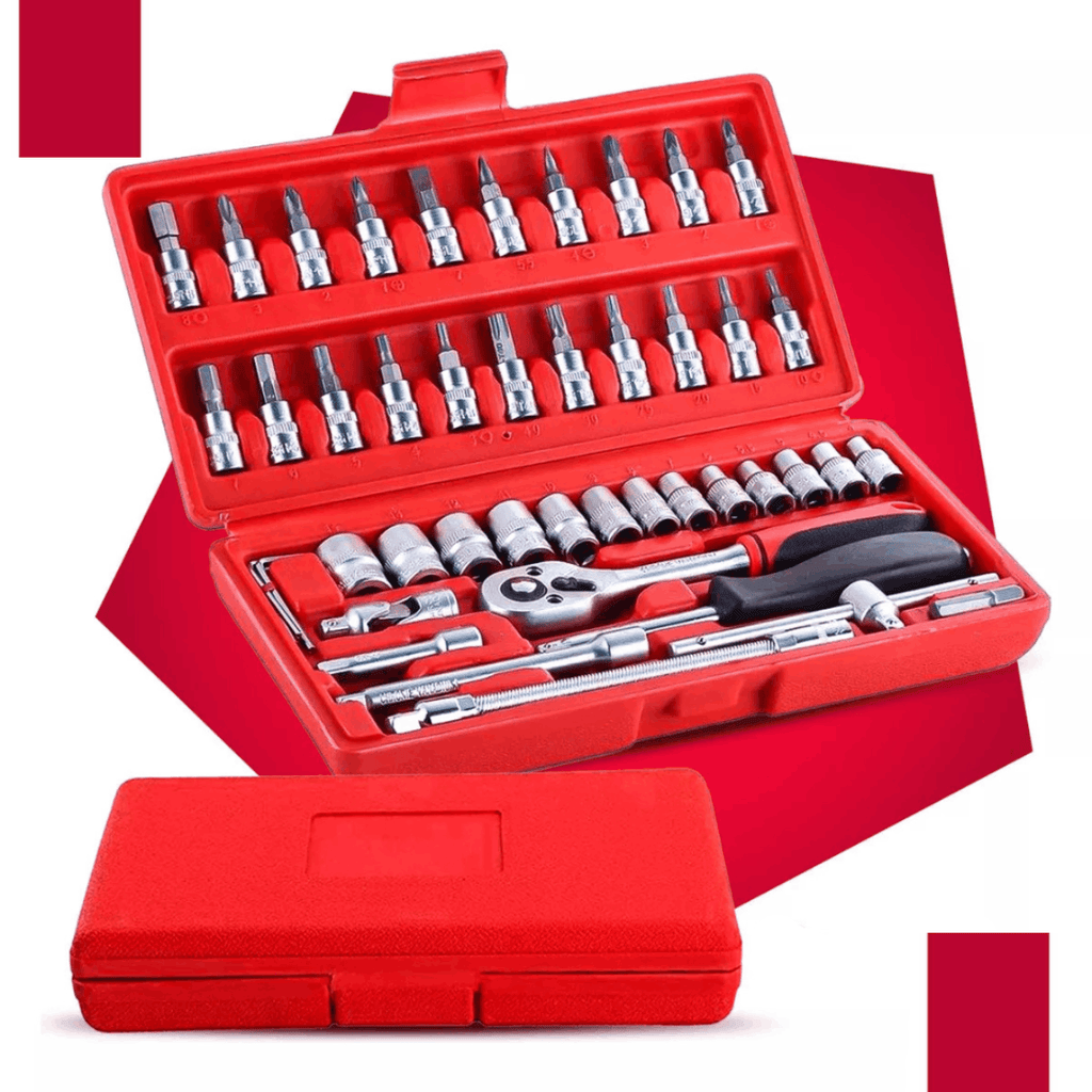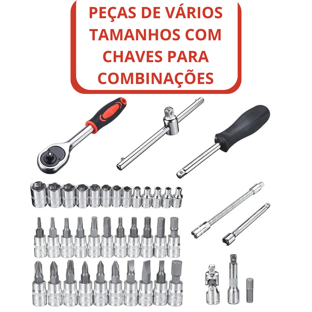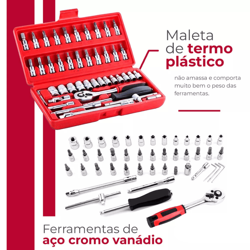 Jogo de Ferramentas com 46 Peças Soquete Aço c/ Maleta uso Automotível e Doméstico