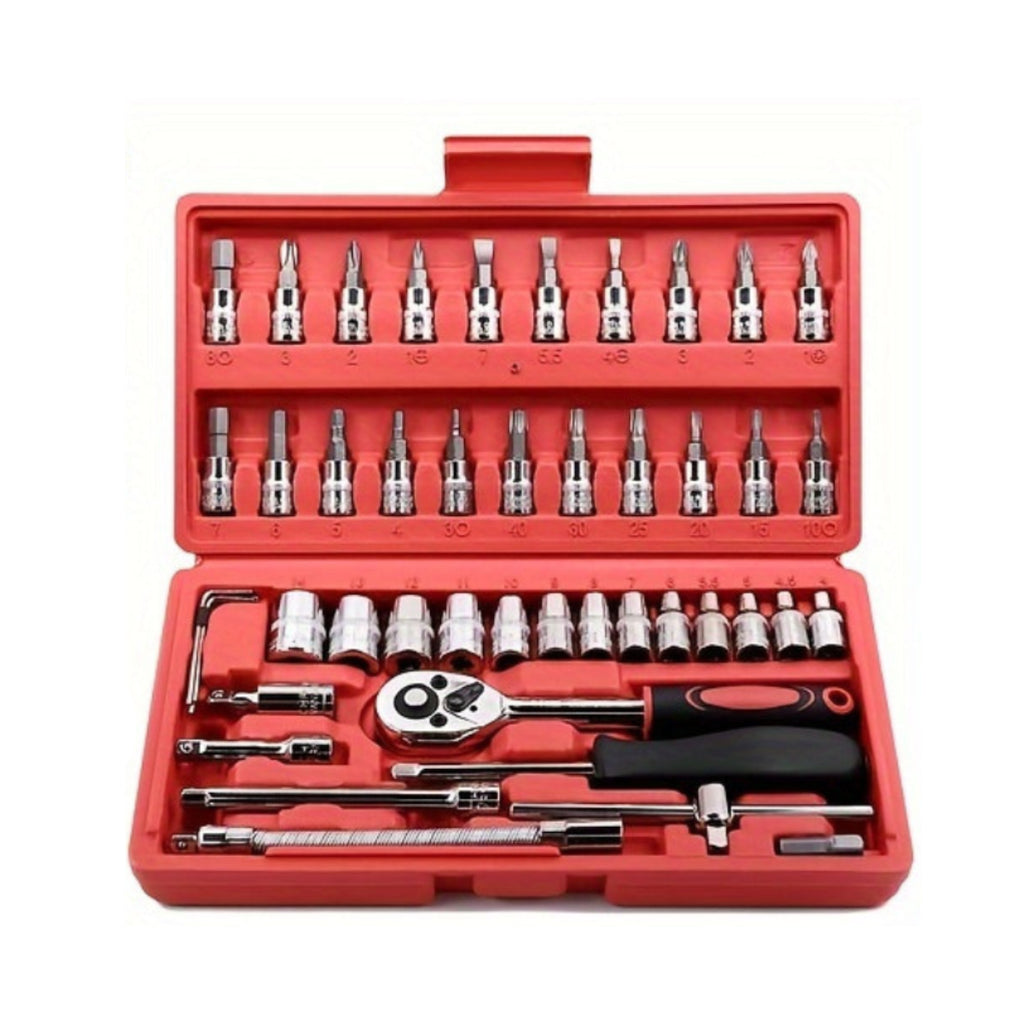 Um conjunto essencial de 45 Peças + 1 Maleta para quem busca eficiência e praticidade em diversas tarefas é projetado para atender desde serviços automotivos até reparos domésticos e industriais. Fabricado em aço de alta qualidade, este kit garante resistência, durabilidade e um desempenho excepcional em todas as aplicações.