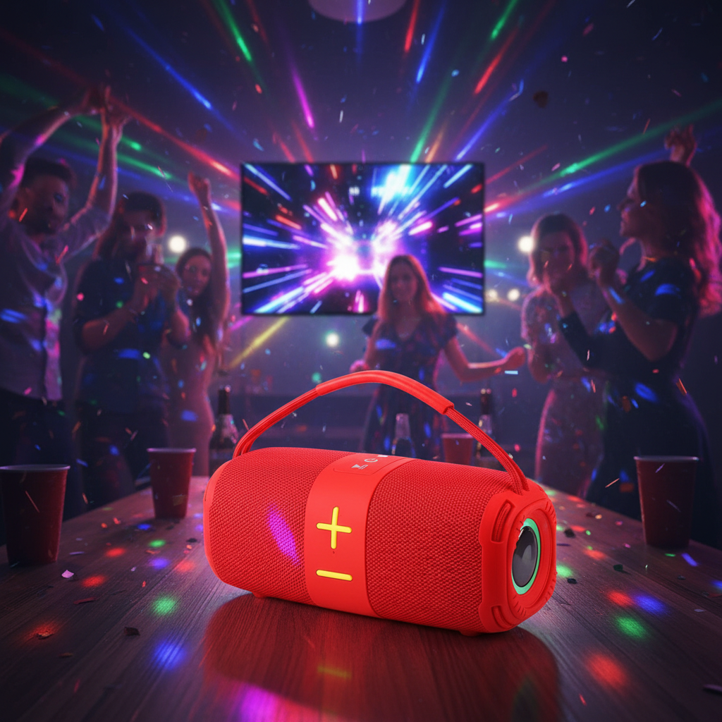Experimente um som superior com alto-falantes duplos que proporcionam áudio nítido com graves profundos. Vida útil com uma bateria de 1500 mAh, desfrute de até 2 horas de reprodução contínua em volume normal. Seja para uma reunião curta ou uma rápida aventura ao ar livre, sua música permanece com você. Com opções de conectividade versáteis conecte sem esforço via Bluetooth 5.3 para uma experiência sem fio estável a até 10 metros de distância. Este alto-falante também suporta cartão TF, unidade flash USB, entrada AUX e rádio FM, oferecendo várias maneiras de reproduzir suas músicas favoritas, melhore sua experiência musical com as luzes LED coloridas embutidas. Perfeitas para festas ou noites relaxantes, essas luzes criam uma exibição visual vibrante e envolvente e reistente a água com certificado IPX6.