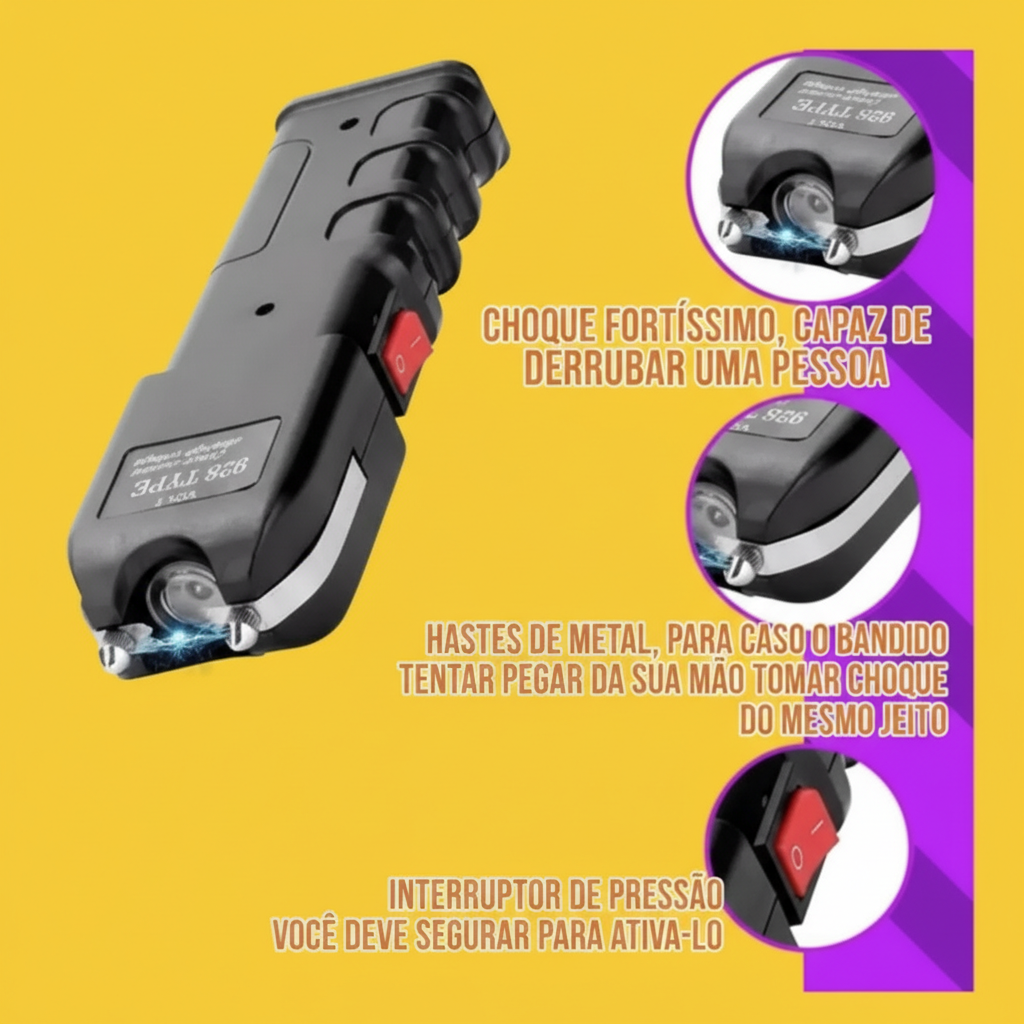 Esta lanterna de choque é ideal para sua segurança pessoal, combinando a utilidade de uma lanterna forte com a capacidade de um aparelho de choque. Ela é compacta e discreta, cabendo facilmente no seu bolso ou bolsa para que você possa levá-la a qualquer lugar sem chamar a atenção.
